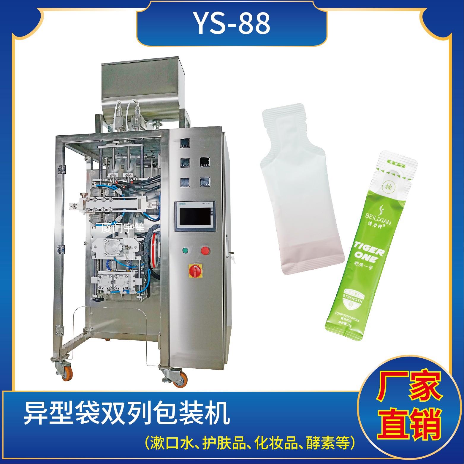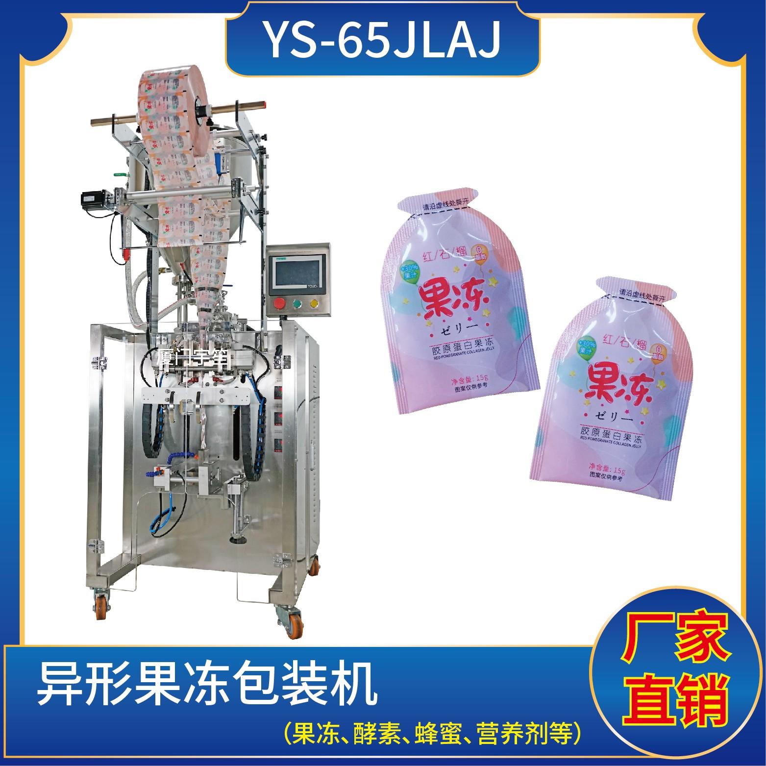YS-65JL 異型袋包裝機(jī)特 點(diǎn) 1、適用于食品、醫(yī)藥、化工、化妝品行業(yè)中液體、醬料等物品的計(jì)量包裝。2、可自動(dòng)完成制袋、計(jì)量、下料、封合、分切、計(jì)數(shù)、且可根據(jù)客戶要求配置打印批號(hào)等功能。3、觸摸屏操作,PLC 控制,驅(qū)動(dòng)步進(jìn)電機(jī)控制袋長,性能穩(wěn)定、調(diào)整方便、檢測準(zhǔn)確。智能式溫控儀,PID調(diào)節(jié),保證將溫度的誤差范圍…